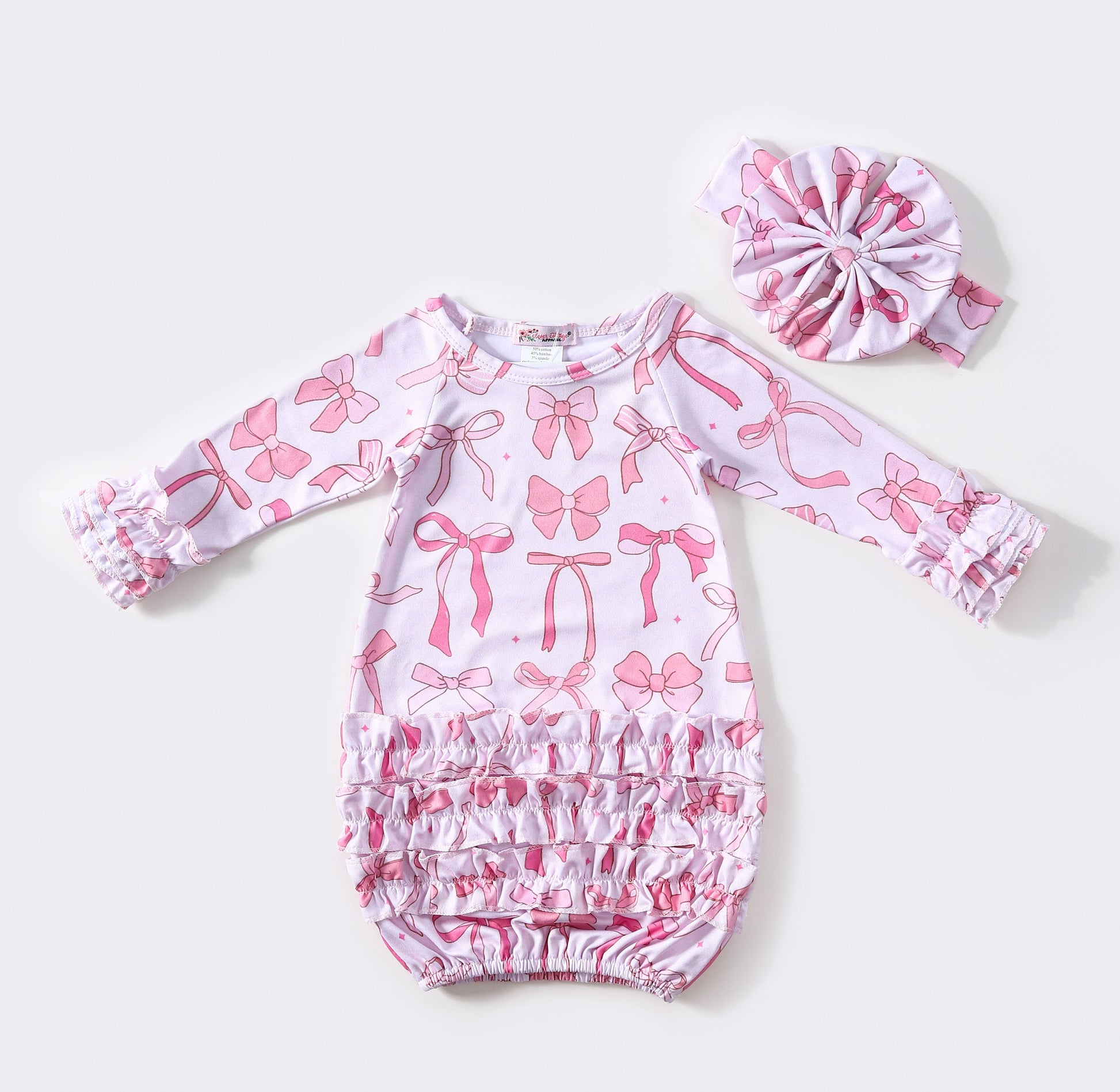 Enjoy sleep or play time when wearing this adorable baby gown and matching headband. Fits Newborn to 3 months!
