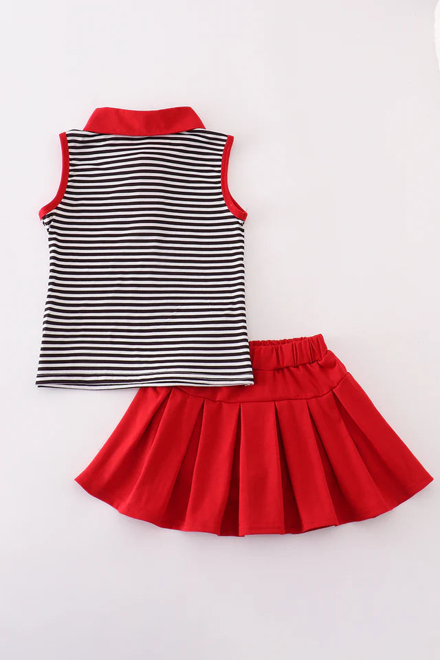 Spice up your outfit with the Red Georgia embroidery skort set! This unique set combines the comfort of shorts with the style of a skirt, and features beautiful embroidery for an extra touch of flair. Perfect for a day out with friends, this skort set will have you feeling fabulous and looking fierce.