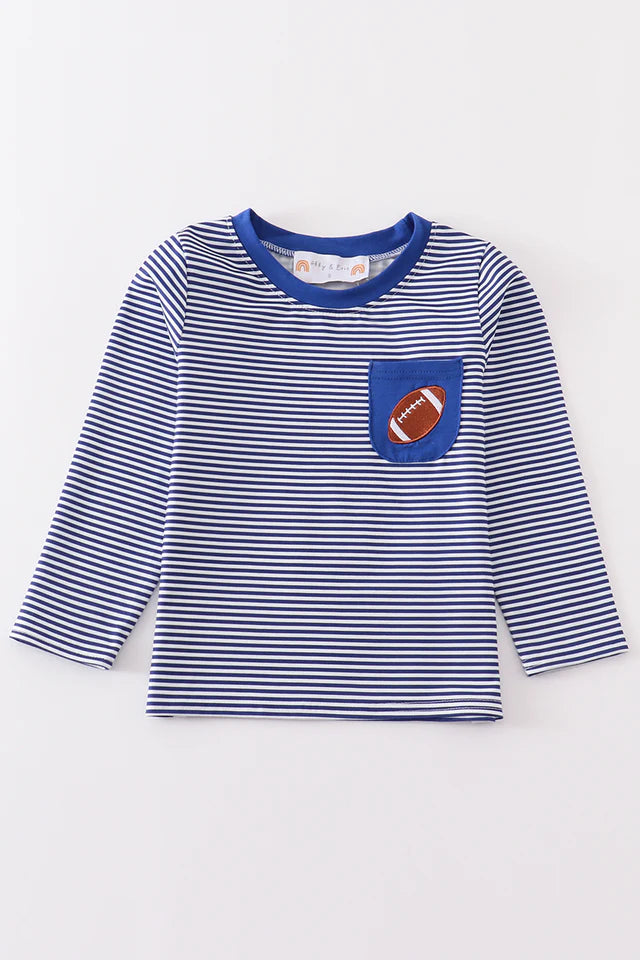 Score a touchdown in style with our Red or Royal Stripe Football Embroidery Top! This quirky and fun top features a bold red or royal stripe design with playful football embroidery. Perfect for casual weekends or game day, this top will have you standing out from the crowd.